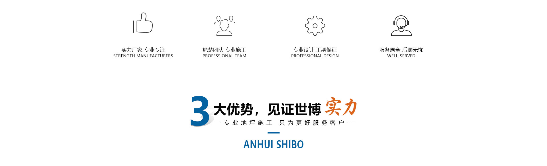 安徽世博裝飾工程有限公司成立于2009年,是一家以外墻涂料、工業(yè)地坪設(shè)計(jì)、施工和銷(xiāo)售為主要的專(zhuān)業(yè)性工程公司、是工業(yè)地坪施工的專(zhuān)業(yè)企業(yè)。公司設(shè)立了售后服務(wù)中心,用戶(hù)遍布全國(guó)大中小城市,一大批具有標(biāo)志性的長(zhǎng)期合作伙伴。“世博公司”環(huán)氧地坪工程,受到了越來(lái)越多的不同行業(yè)用戶(hù)的好評(píng)及青睞。公司擁有一批經(jīng)驗(yàn)豐富的管理人員和專(zhuān)業(yè)的施工人員,以保障產(chǎn)品的成功應(yīng)用,用較小的代價(jià)獲得理想的效果,尤其在地坪涂裝方面優(yōu)勢(shì)突出。而且以好的品質(zhì)管理模式,向客戶(hù)提供“獨(dú)具魅力”、“性能優(yōu)異”、“質(zhì)量穩(wěn)定”的產(chǎn)品。公司主要產(chǎn)品包括:平涂型環(huán)氧地坪、環(huán)氧砂漿地坪、環(huán)氧樹(shù)脂自流平地坪、滾涂型防靜電地坪、自流平防靜電地坪、復(fù)古地坪、水性環(huán)氧樹(shù)脂地坪、彩色透水混凝土地坪、壓花壓模藝術(shù)地坪、金剛砂耐磨硬化地坪、混凝土密封固化劑地坪、乙烯基酯重防腐地坪、GEP 標(biāo)準(zhǔn)型地坪、彈性PU運(yùn)動(dòng)場(chǎng)地坪、塑膠跑道地坪,PVC橡膠地板、停車(chē)場(chǎng)地坪、無(wú)震...